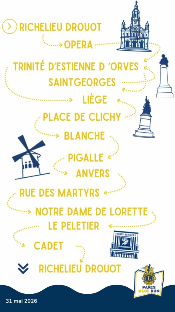Pour cette édition 2026, une seule boucle de 10 km couvrant les quartiers divers du 9e et ses multiples visages : Opéra, La Fayette, Trinité, Pigalle, Notre-Dame-de- Lorette, Saint Georges, …, donnant l’occasion de fouler les endroits les plus iconiques de Paris 9..